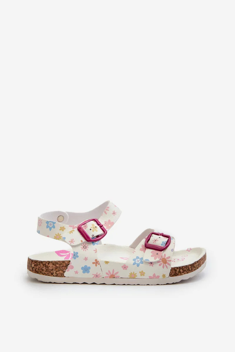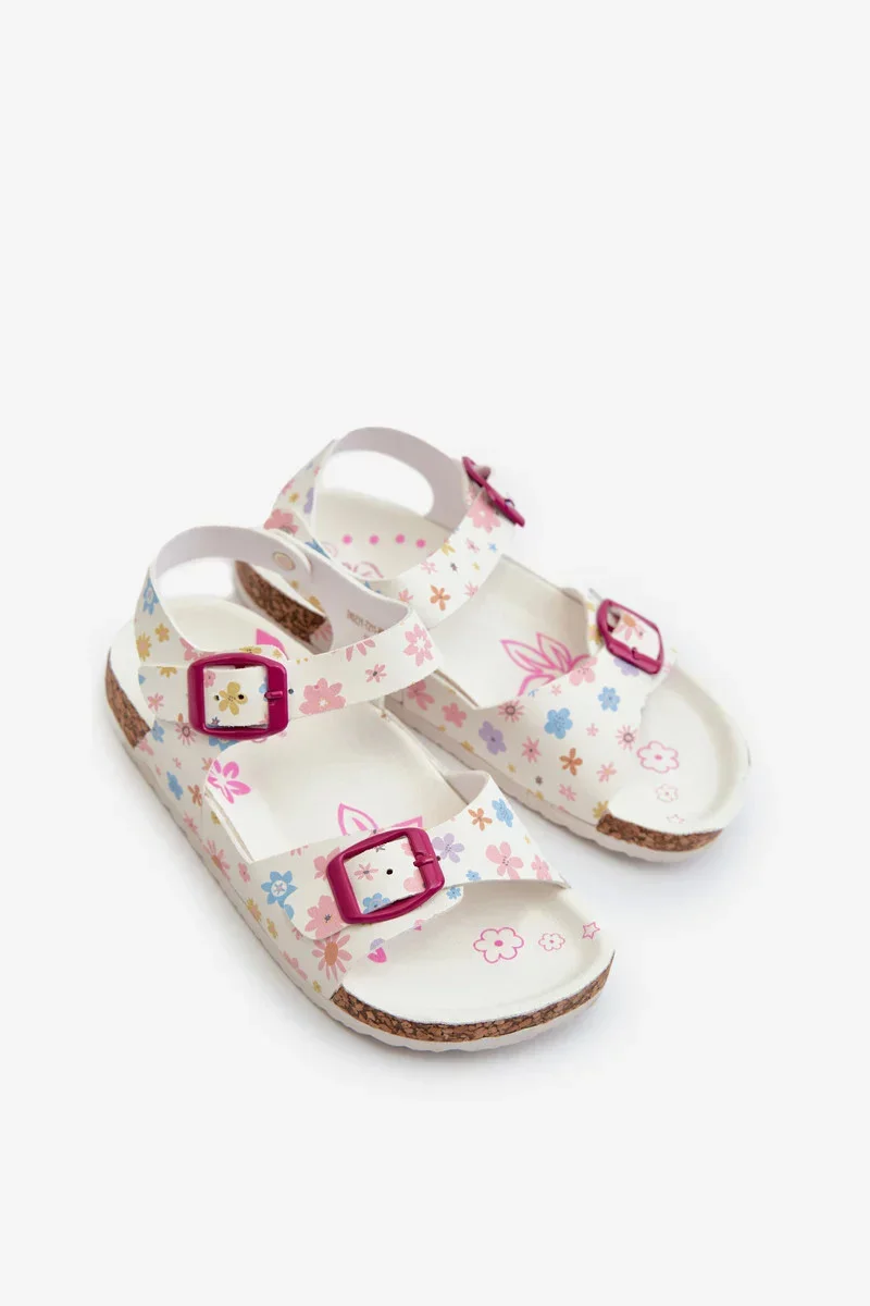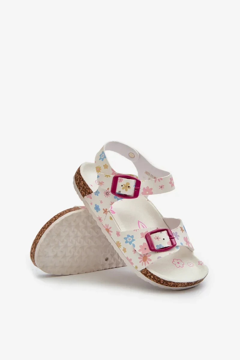 Dětské sandály s květinami a přezkami bílé Memoria
