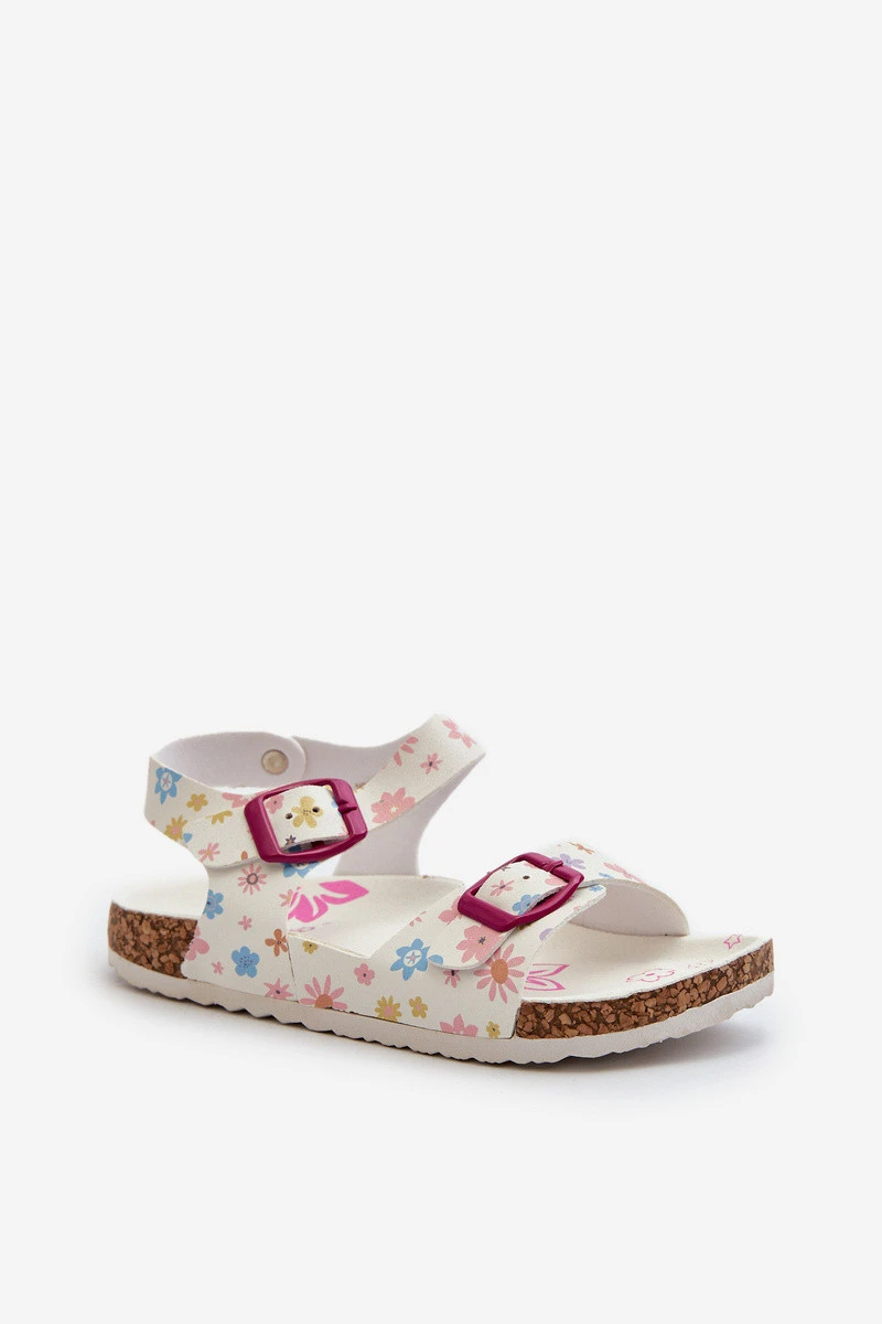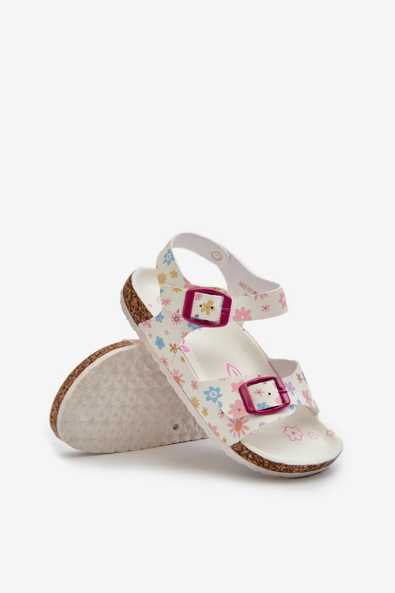 Dětské sandály s květinami a sponami bílé Memoria