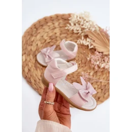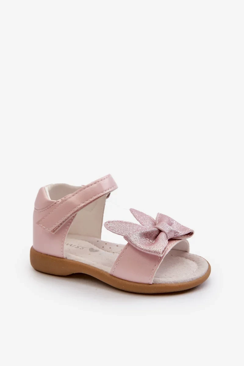 Dětské sandály s mašlí a zapínáním na suchý zip, růžové Wistala