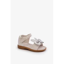 Dětské sandály s mašlí, zapínání na suchý zip, bílá Wistala