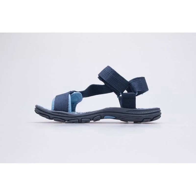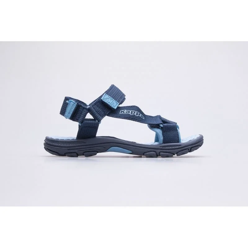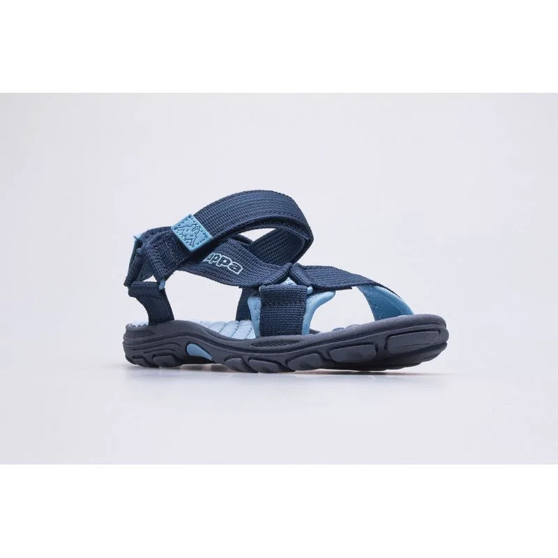 Dětské sandály Kappa 260772T-6764 v tmavě modré barvě. Sandály jsou skvělé pro každodenní letní zábavu. Sandály mají pěnovou stélku z měkkého syntetického materiálu, která zajišťuje pohodlí a odpružení. Dětské sandály mají gumovou podrážku, která zajišťuje přilnavost k zemi, a tím i bezpečnost na mokrém povrchu. Systém nastavitelných pásků na suchý zip zaručuje dokonalé přizpůsobení šířce a tvaru chodidla.