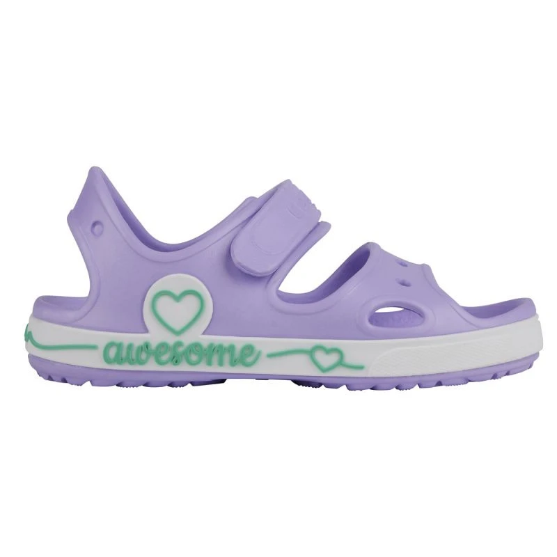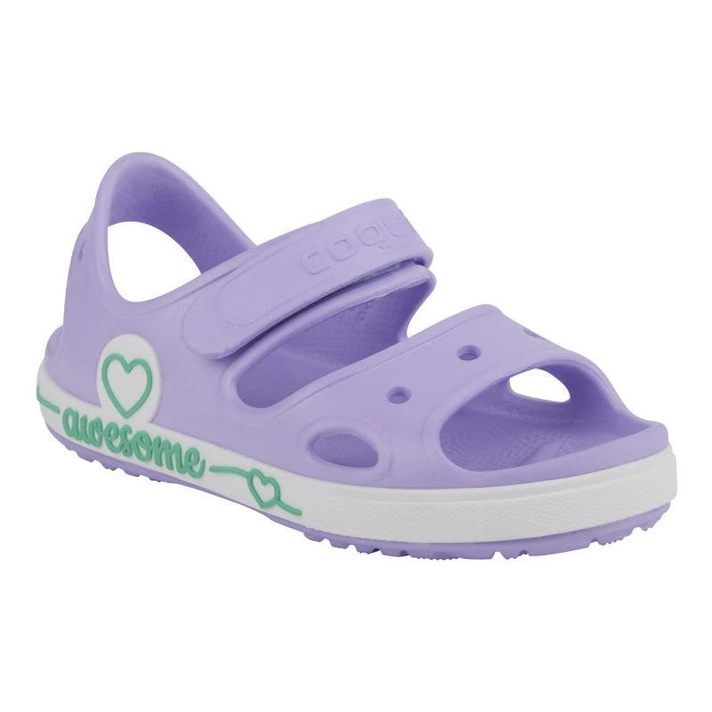 Materiał: Wysokogatunkowe tworzywo Materiał CoquiAir Lekki i elastyczny Właściwości antybakteryjne Amortyzacja Ergonomiczny kształt wkładki Elastyczne paski Jeden pasek z regulacją na rzep Niebrudząca podeszwa Design dla dzieci