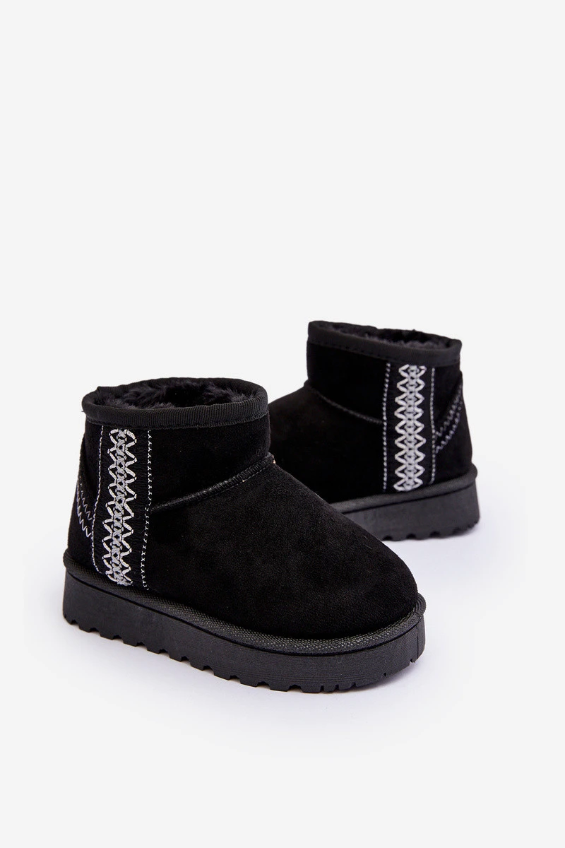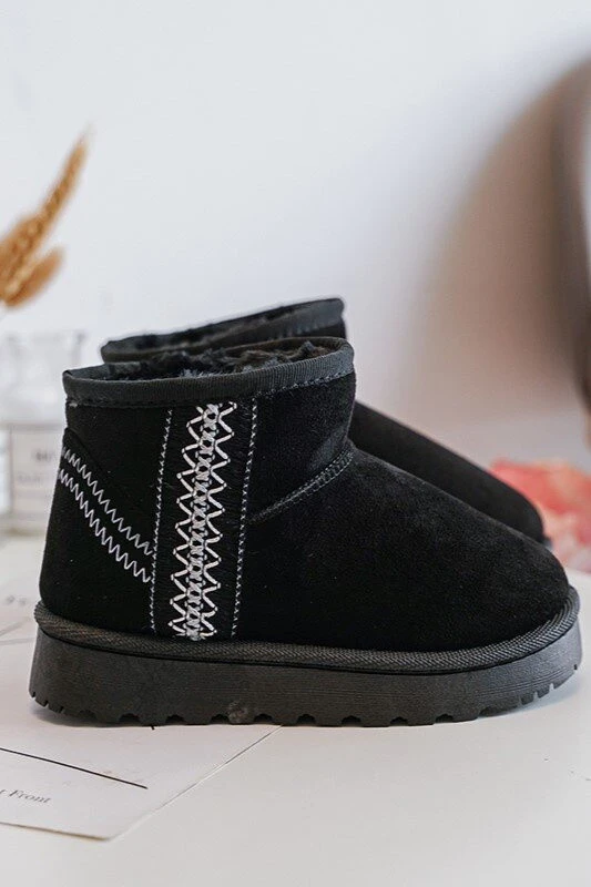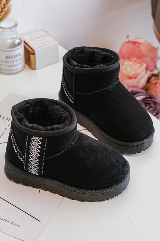 Dětské sněhové boty s módním vzorem na kotníku. Uvnitř zateplené syntetickou, hrubou vložkou. Vyrobeno z eko semiše. Tlustá podrážka z gumového materiálu ochrání před chladným povrchem. Tento model je k dispozici také ve velikostech dámských. Vytvořte kompletní maminka + dítě! Při výběru velikosti se řiďte tabulkou velikostí.