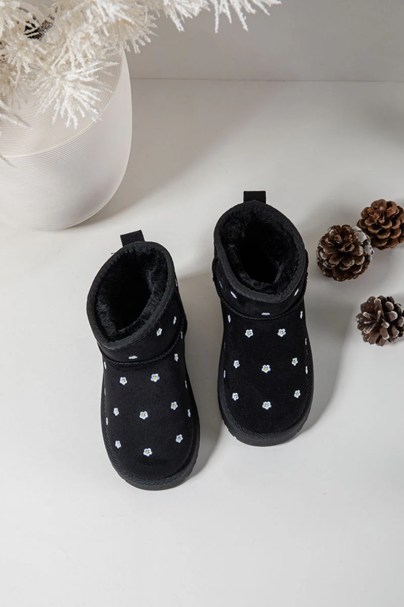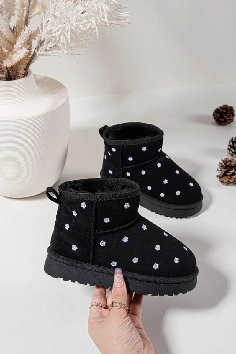 Sněhule pro dívky jsou spojení pohodlí, tepla a roztomilého vzhledu. Model ozdobený jemnými, vyšitémi květinami vypadá výjimečně dívčsky a stylově. Měkké kožíškové vnitřní podšívky zajišťuje příjemné teplo a pohodlí v chladných dnech, zatímco podrážka z gumového materiálu se stará o stabilitu a dobrou přilnavost k povrchu. Jsou to ideální zimní boty, které se hodí jak na každodenní procházky, tak na zimní hry, zajišťující pohodlí a bezpečnost malým. Při výběru velikosti prosím řiďte se tabulkou velikostí. Při výběru velikosti se řiďte tabulkou velikostí.