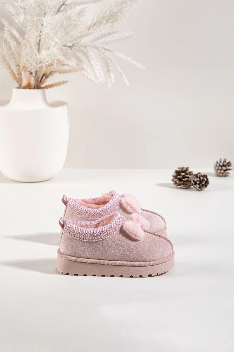 Dětské sněhule s výšivkou a mašlí Růžové Daven