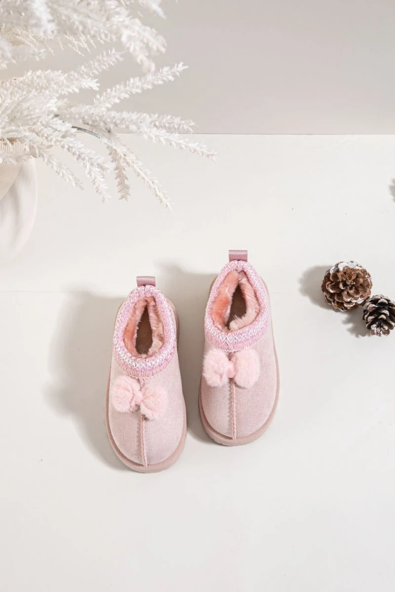 Dětské sněhule vyrobené z měkkého eko semiše jsou ideální volbou na zimní dny. Model je ozdoben výšivkou a roztomilou mašlí, což dodává dívčí šarm. Vnitřek bot je vyložen teplou kožešinkou, která poskytuje pohodlí a ochranu před chladem. Podešev z gumového materiálu zajišťuje dobrou přilnavost a stabilitu na kluzkých površích. Ideální na každodenní zimní hry a procházky. Při výběru velikosti se řiďte tabulkou velikostí.