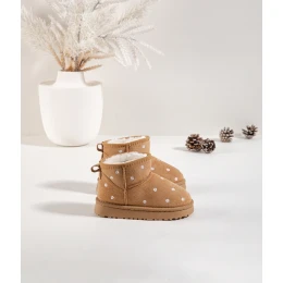 Stylové a hřejivé dětské sněhule Gracina v camel provedení jsou ideální pro zimní období. Boty jsou zdobené jemnými květinovými motivy, které dodávají hravý a veselý vzhled. Měkký vnitřní kožíšek poskytuje výborné teplo a komfort během chladných dní. Praktický střih umožňuje snadné nazouvání a pohodlné nošení, zatímco pevná podrážka zajišťuje stabilitu při chůzi i na kluzkém povrchu.