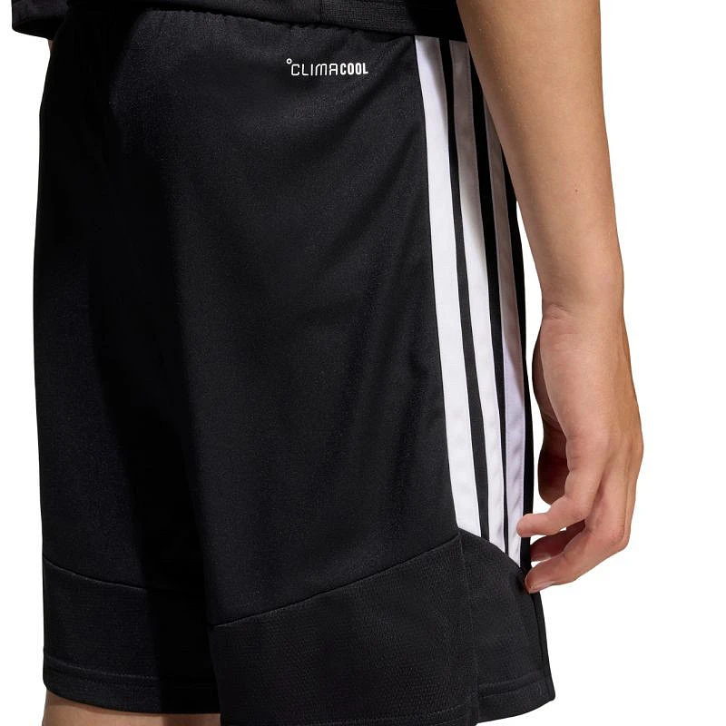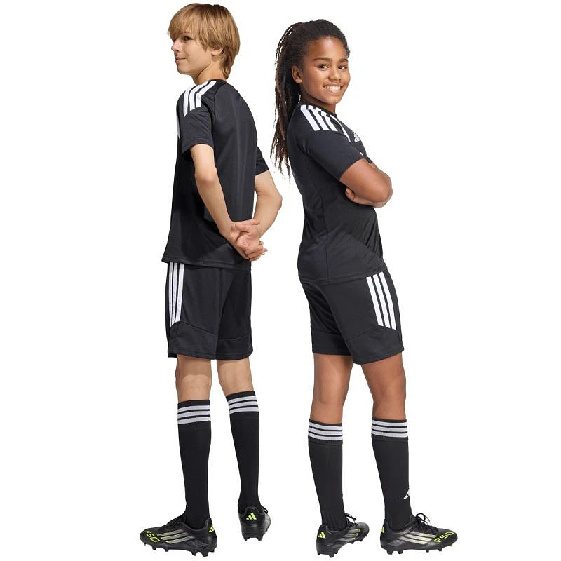 Dětské šortky adidas Tiro 26 League černé KA8819 Dětské šortky adidas pro rozhodující zápasy z řady Tiro. Elastický pas s vnitřní stahovací šňůrkou. Technologie Climacool. Pruhy na bocích. Malé vyšívané logo. Materiál: 100% recyklovaný polyester.