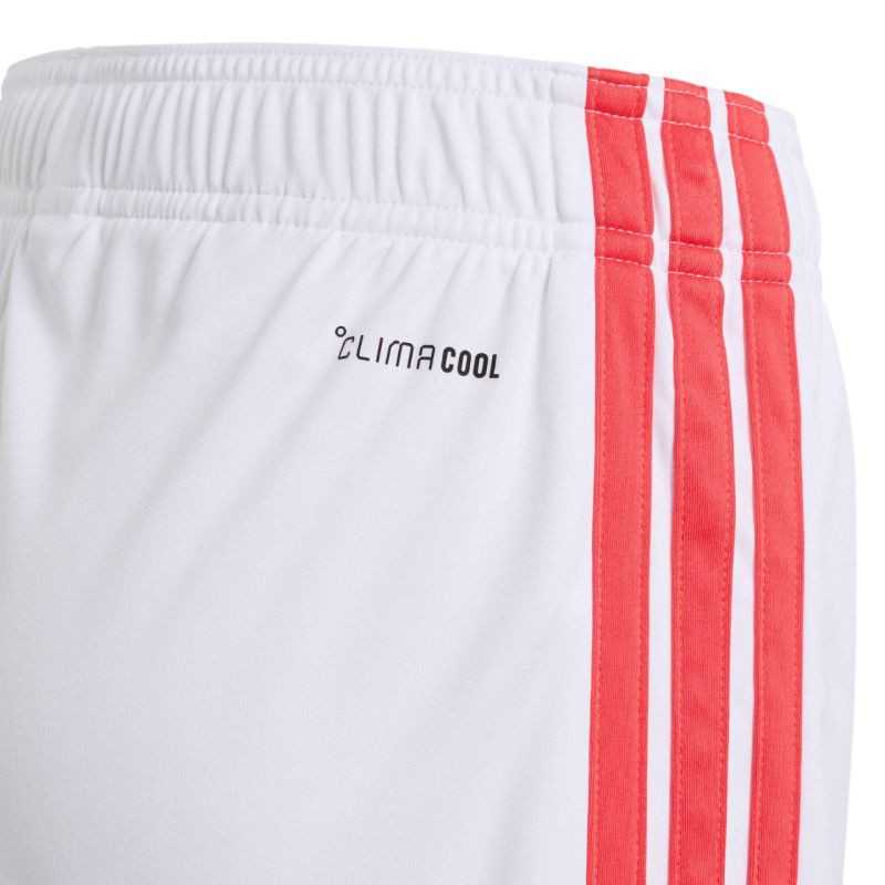 Dětské šortky adidas Tiro 26 League červenobílé KR0364 Tyto šortky adidas z řady Tiro jsou ideální pro rozhodující zápasy. Elastický pas s vnitřní stahovací šňůrkou. Technologie Climacool. Pruhy na bocích. Malé vyšívané logo. Materiál: 100% recyklovaný polyester.