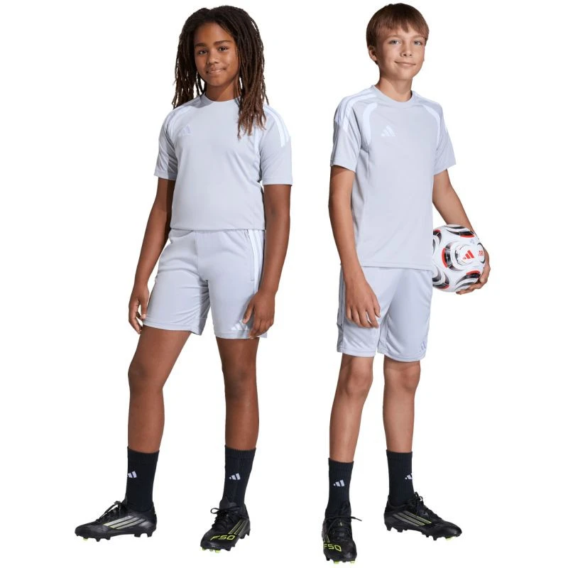 Tréninkové šortky adidas Tiro 26 League šedé JY7149 tréninkové šortky adidas Tiro 26 League jsou určeny pro všechny mladé hráče, kteří se chtějí nerušeně zdokonalovat ve fotbale. regular fit. elastický pas se stahovací šňůrkou. technologie climacool. síťované vložky. boční kapsy na zip. materiál: 100% recyklovaný polyester.