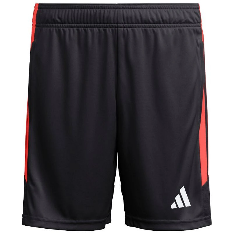Spodenki dla dzieci adidas Tiro 26 League czarno-czerwone JY7148 Dziecięce spodenki adidas sprawdzą się podczas decydujących rozgrywek. Model pochodzi z linii Tiro. Elastyczna talia regulowana wewnętrznym sznurkiem. Technologia Climacool. Paski po bokach. Niewielkie, wyszywane logo. Materiał: 100% poliester pochodzący z recyklingu