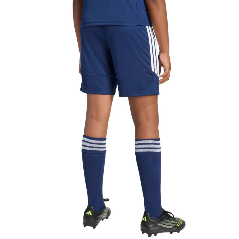 Dětské šortky adidas Tiro 26 League navy blue KA8821 Tyto dětské šortky adidas z řady Tiro jsou ideální pro rozhodující zápasy. Elastický pas s vnitřní stahovací šňůrkou. Technologie Climacool. Pruhy na bocích. Malé vyšívané logo. Materiál: 100% recyklovaný polyester.