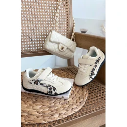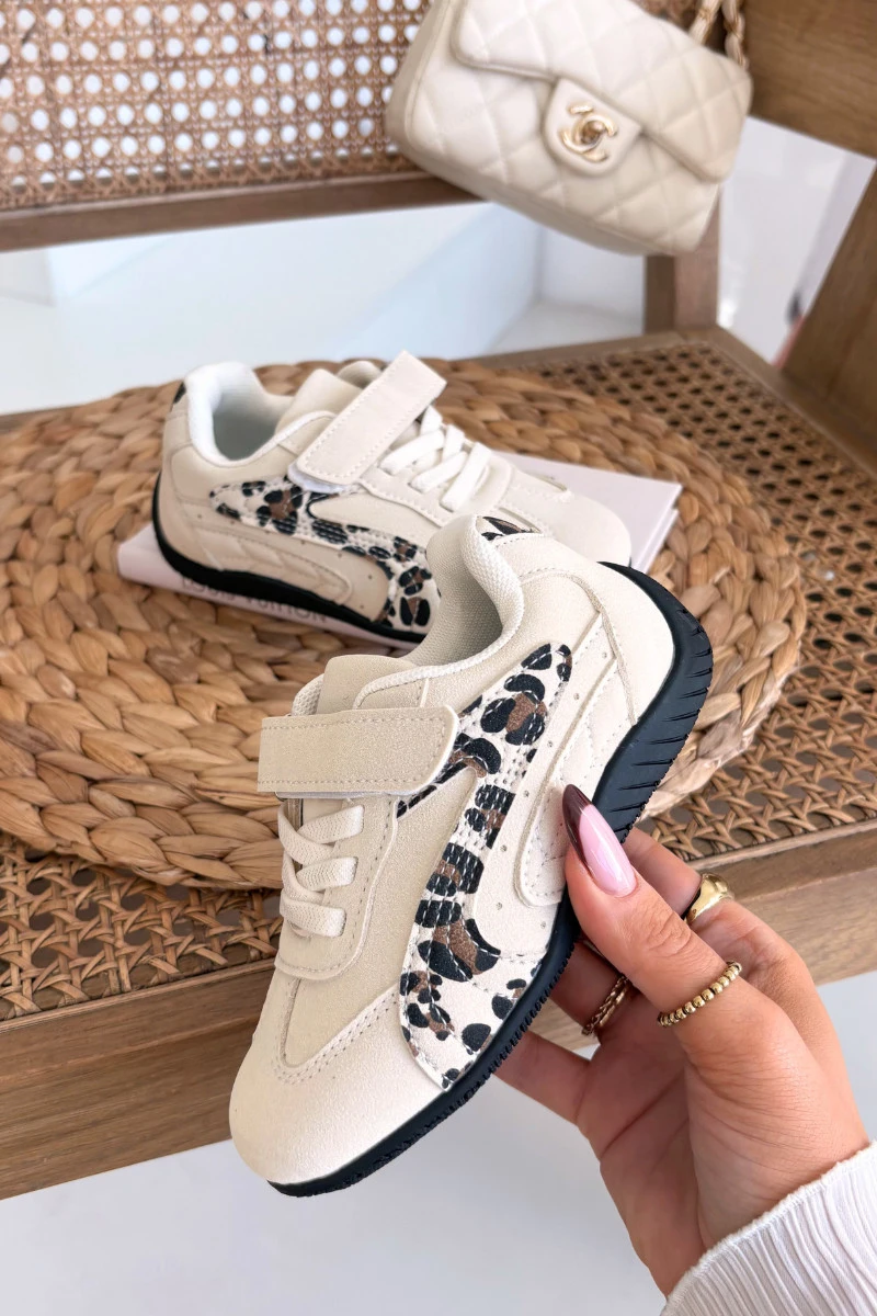 Dětské sportovní boty na suchý zip s leopardím vzorem Perrin – béžové