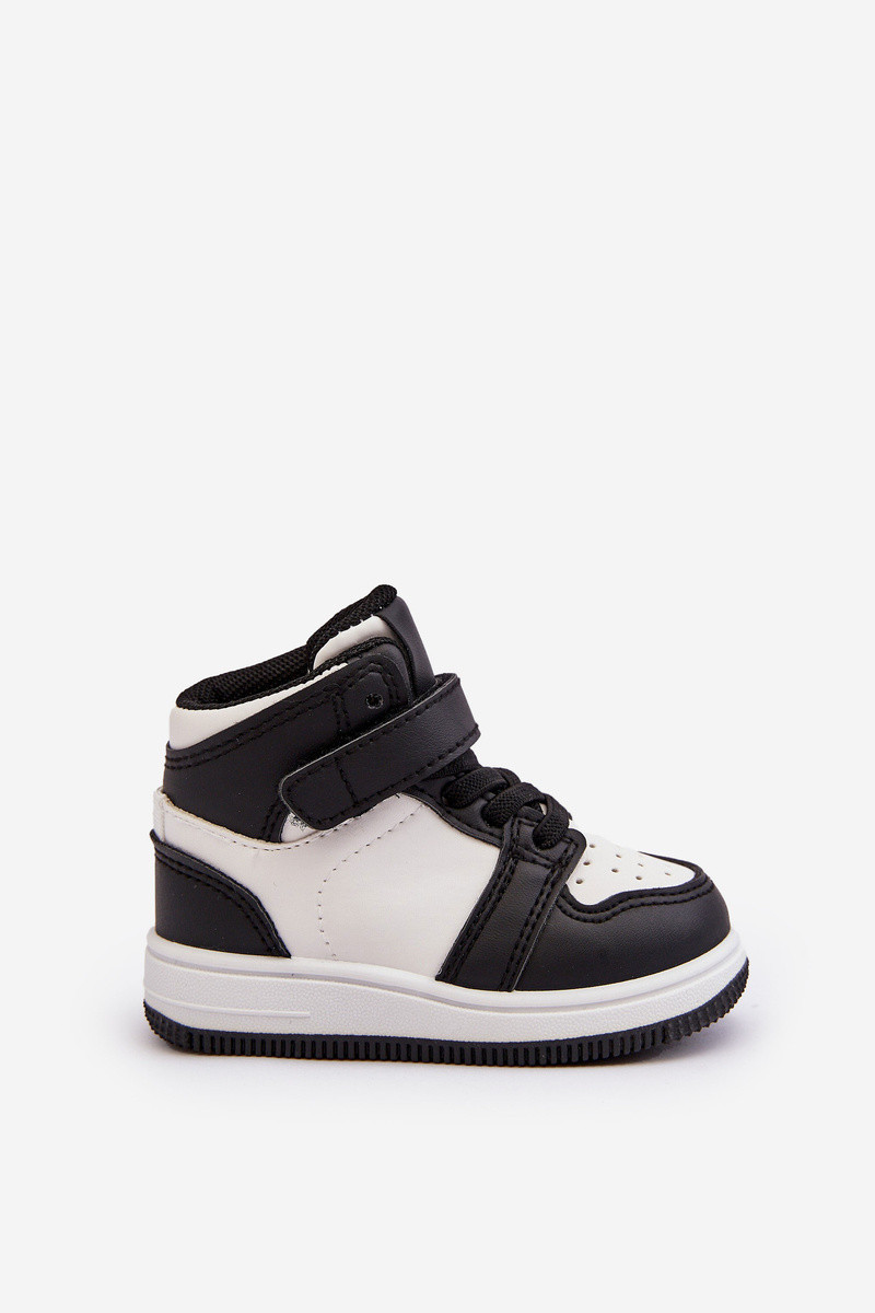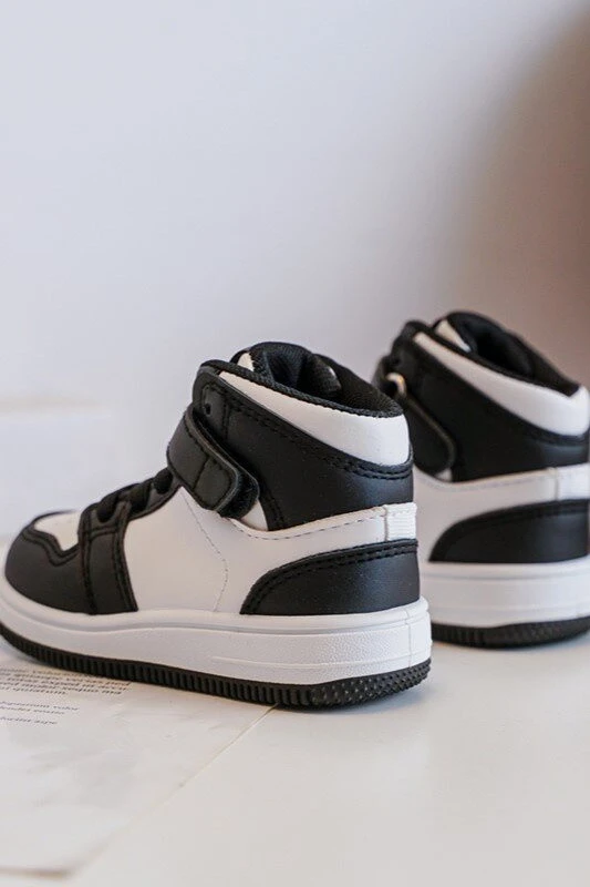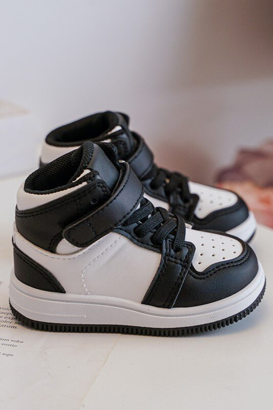 Dětské sportovní boty vyrobené z eko kůže. Připevněno na plošině z umělého materiálu. Upevněné na suchý zip a navíc mají gumové popruhy, které imitují šňůrky. Model s vyšší krajkou. Tyto tenisky určitě potěší vaše dítě! Při výběru velikosti se řiďte tabulkou velikostí.