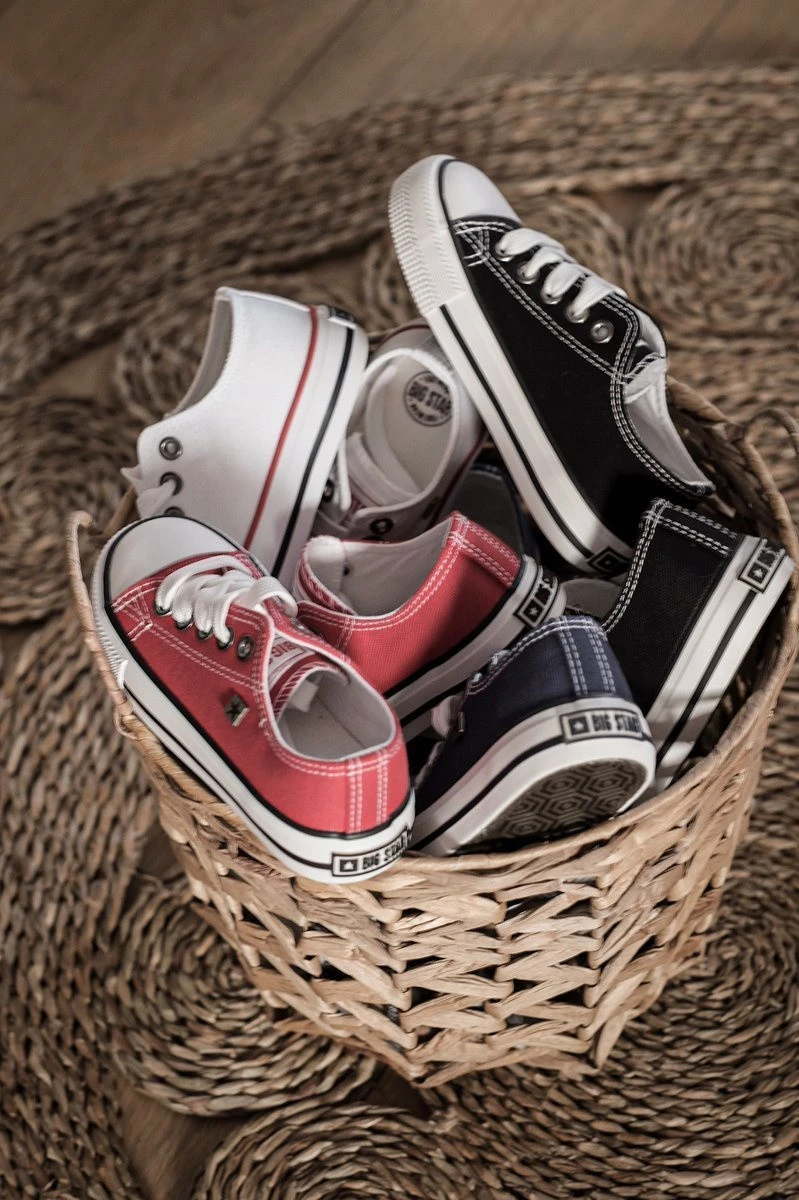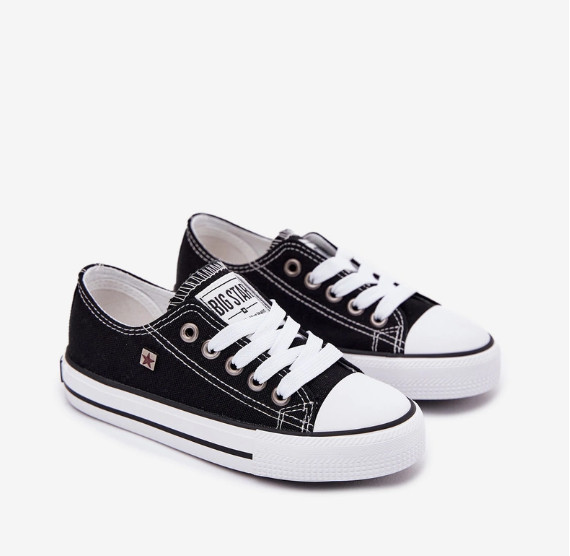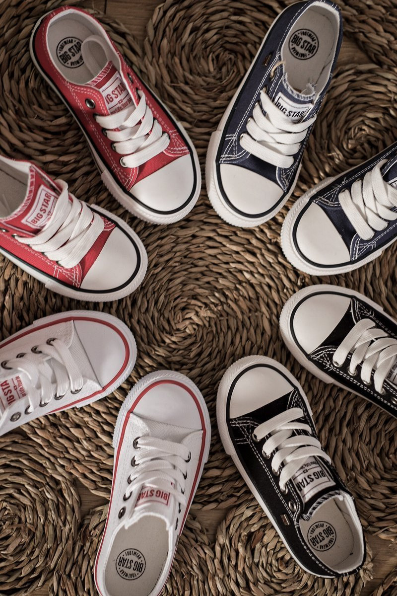Klasické tenisky od společnosti BIG STAR. Tenisky jsou vyrobeny z vysoce kvalitního materiálu, který je odolný vůči vnějším vlivům. Tenisky dobře padnou do tvaru chodidla a mají funkční protiskluzovou podrážku. Nadčasový design dostupný v mnoha barvách. Nezapomeňte se podívat na celou naši kolekci bot BIG STAR. Velikosti 17–21 mají tři očka na šněrování a velikosti 22–27 mají 4 očka. Při výběru velikosti použijte tabulku velikostí.