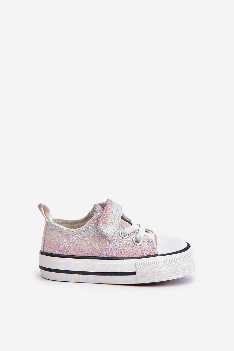 Roztomilé dětské tenisky zdobené třpytivými flitry jsou ideální volbou pro malé milovnice módy. Zapínání na suchý zip, s gumovými šňůrkami napodobujícími tkaničky. Podešev vyrobena z gumového materiálu. Skvěle se hodí jak na běžné nošení, tak na speciální příležitosti. Při výběru velikosti se řiďte tabulkou velikostí.