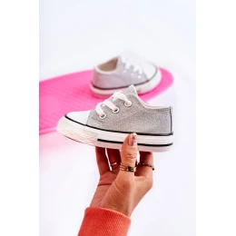 Dětské tenisky z textilního materiálu. Zdobené třpytkami. Klasická vazba. Špička vyztužená pryžovým materiálem. Měkká a textilní stélka. Gumová podrážka a protiskluzová. Lehké a pohodlné tenisky. Ideální na jarní a letní sezónu. Při výběru velikosti použijte tabulku velikostí.