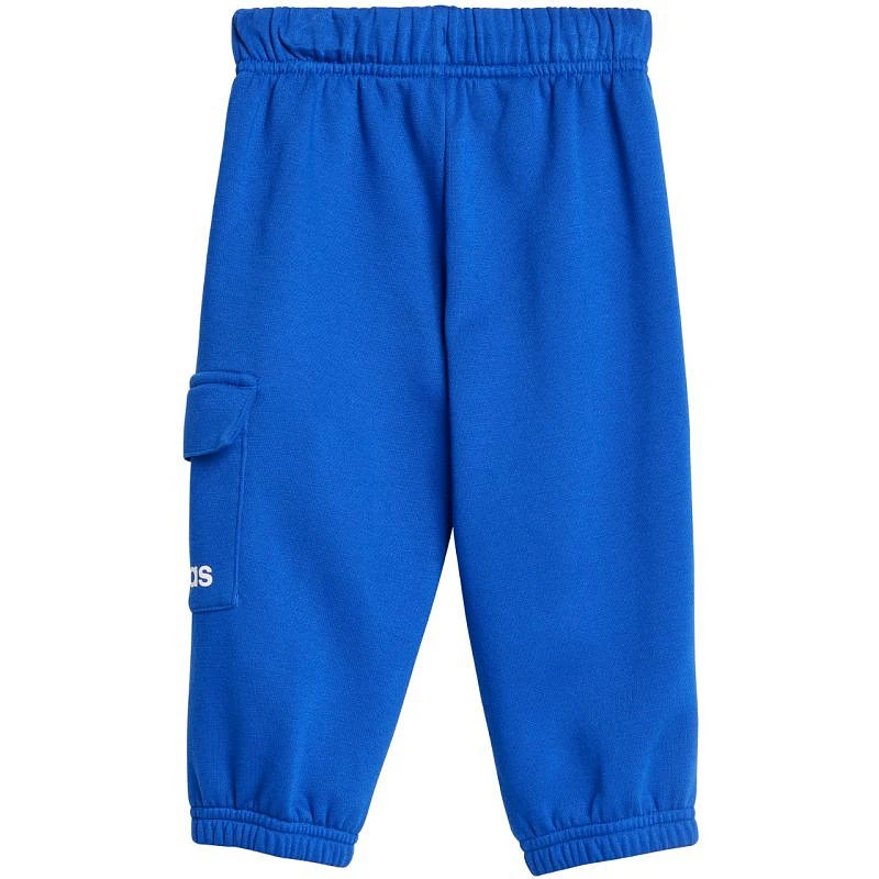 Modré tepláky adidas Essentials Joggers JE1381 jsou tepláky pro každodenní nošení vyrobené z bavlny a polyesteru. Tepláky mají standardní střih se zapínáním na patentky na rameni až do velikosti 86 cm. Kalhoty mají elastický pas se stahovací šňůrkou, elastické rozparky na nohavicích a cargo kapsy. materiál: 70 % bavlna, 30 % polyester.