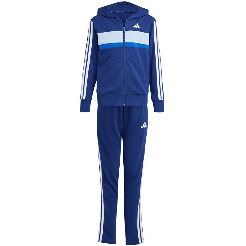 Dětská tepláková souprava adidas Seasonal Essentials Tiberio 3-Stripes French Terry v tmavě modré barvě JI6035 Dětská tepláková souprava adidas Seasonal Essentials Tiberio 3-Stripes French Terry je typickým příkladem pohodlí. Materiál s vysokým podílem bavlny poskytuje komfort a je vhodný na trénink i každodenní nošení. Mikina a kalhoty jsou vybaveny kapsami. Standardní střih. Tepláky mají elastický pas a jsou nastavitelné pomocí šňůrky. Mikina bez kapuce není nastavitelná. Materiál: 70 % bavlna, 30 % polyester.