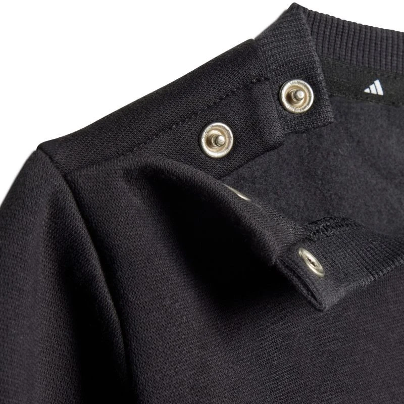 Dres dla dzieci adidas Essentials Joggers czarny JC9745 Dres dla dzieci adidas sprawdzi się podczas codziennego użytkowania. Bluza i spodnie. Dres uszyto z bawełny i poliestru. Standardowy krój. W bluzach do rozmiaru 86 cm zamontowano zapięcie na zatrzaski na ramieniu. Spodnie posiadają elastyczną talię ze sznurkiem do regulacji. Nogawki wykończone elastycznymi ściągaczami. Kieszenie typu cargo. Materiał: 70% bawełna, 30% poliester