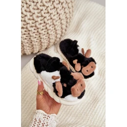 Dětské pantofle s kravičkovým motivem jsou roztomilou a zábavnou volbou pro nejmenší. Vyrobeny z měkkého a příjemného na dotek kožešinového materiálu, poskytují teplo a pohodlí při nošení. Pantofle jsou zdobeny motivem krávy. Zakryté špičky chrání nohy před chladem a pevná podrážka zajišťuje stabilitu. Ideální pro každodenní nošení doma, tyto pantofle učiní každé chladné ráno a večer příjemnější. Při výběru velikosti se řiďte tabulkou velikostí.