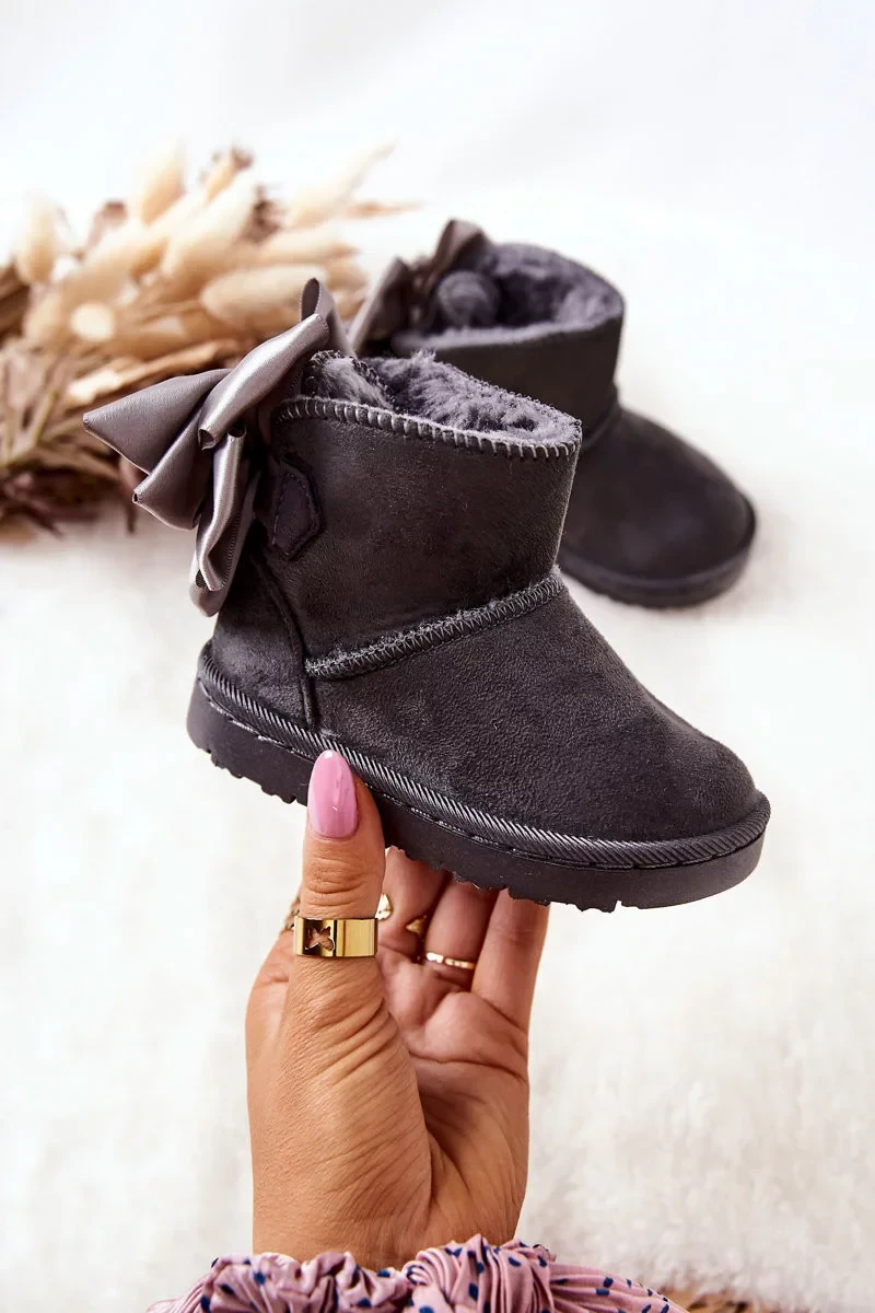 Dětské Teplé Sněhule S mašlí Šedé Snowis