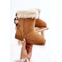 Dětské Teplé Sněhule Semišové s Mašlemi Béžove Funky