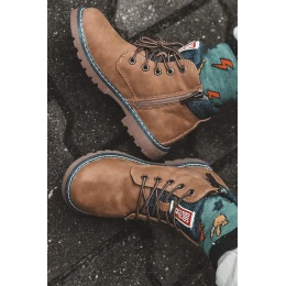 Skvělé boty ve stylu trapperů se osvědčí v chladných podzimních dnech! Mají izolaci v podobě přikrývky na obuv. Nasazené na plochém podpatku a platformě s protiskluzovou podrážkou. Navíc byly oříznuty nití. Model s klasickým šněrováním a zipem na boku svršku. Boty jsou vyrobeny z eko kůže a látky. Při výběru velikosti použijte tabulku velikostí.
