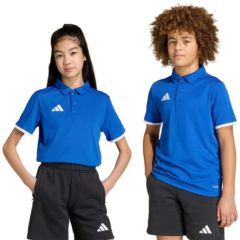Dětská polokošile adidas Entrada 26 modrá JZ6625 Juniorská polokošile adidas Entrada kombinuje sportovní styl s elegancí a je vybavena technologií Climacool, která odvádí a rozptyluje pot. Límec s knoflíky dodává elegantní vzhled a malé logo. Regular střih. Materiál: 100% recyklovaný polyester.