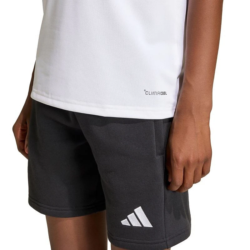 Dětská polokošile adidas Entrada 26 bílá JZ6624 Juniorská polokošile adidas Entrada kombinuje sportovní styl s elegancí, je vybavena technologií Climacool, která odvádí a rozptyluje pot, límcem na knoflíky pro elegantní vzhled, malým logem a regular fit střihem. Materiál: 100% recyklovaný polyester.