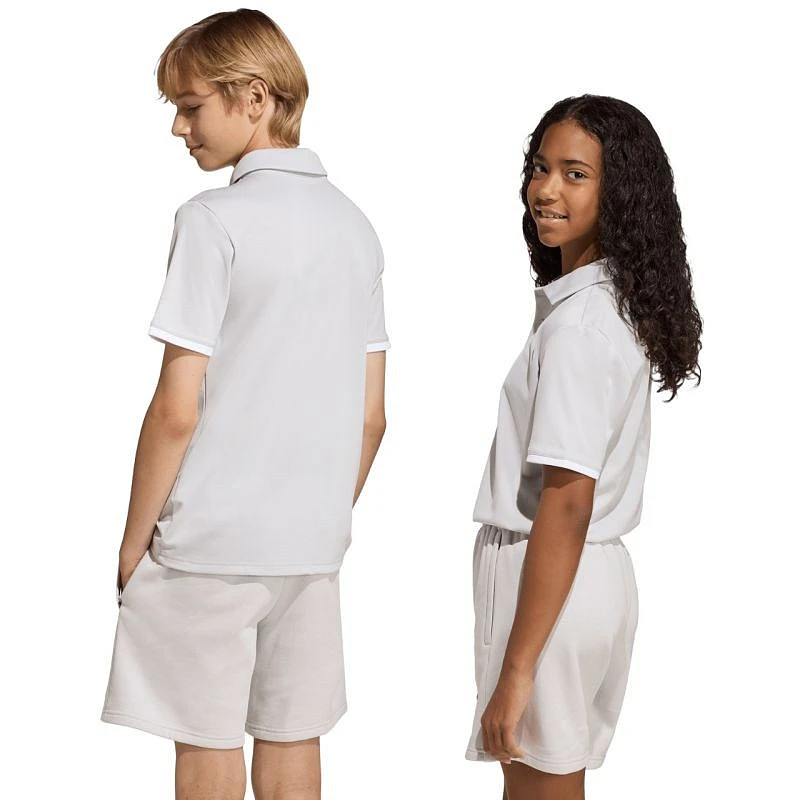 Dětská polokošile adidas Entrada 26 světle šedá JZ6628 Juniorská polokošile adidas Entrada kombinuje sportovní styl s elegancí, je vybavena technologií Climacool, která odvádí a rozptyluje pot, límcem na knoflíky pro elegantní vzhled, malým logem a regular fit střihem. Materiál: 100% recyklovaný polyester.