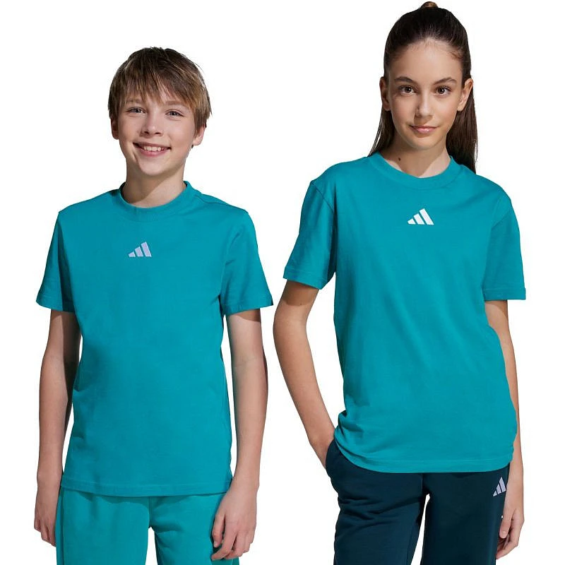 Koszulka dla dzieci adidas Essentials Tee 160 zielona JW0005 Koszulka adidas przeznaczona dla dzieci sprawdzi się podczas codziennego użytkowania. Bawełniany materiał. Standardowy krój nie opina sylwetki. Niewielkie logo na piersi. Materiał: 100% bawełna