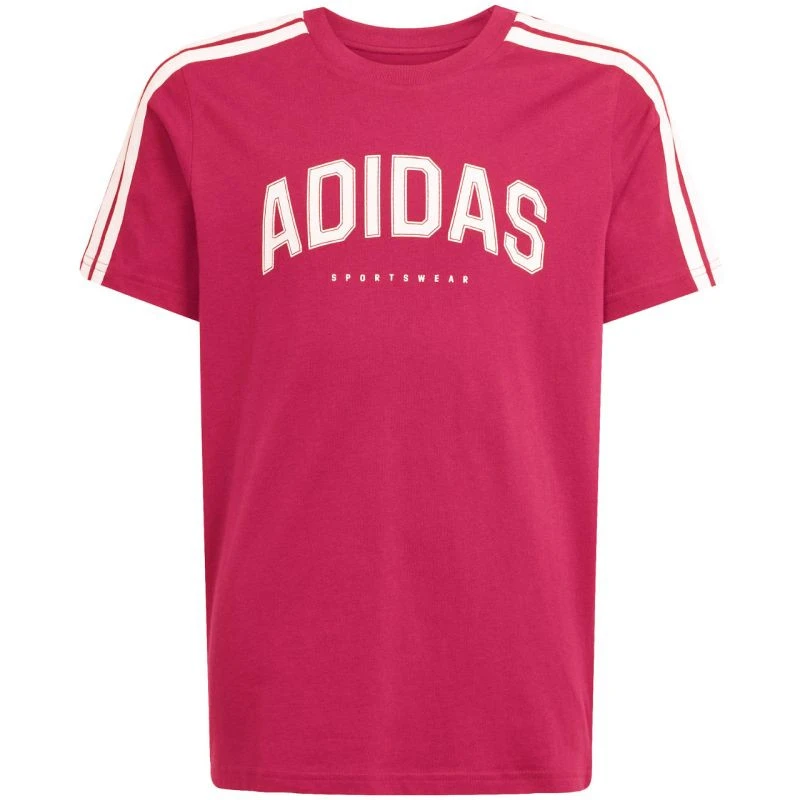 Koszulka dla dzieci adidas Codes Collegiate Graphic różowa KA9764 Koszulka dla dzieci adidas inspirowana akademickim stylem sprawdzi się na co dzień. Miękka konstrukcja z bawełnianej tkaniny. Standardowy krój. Zaokrąglony dekolt. Materiał: 100% bawełna