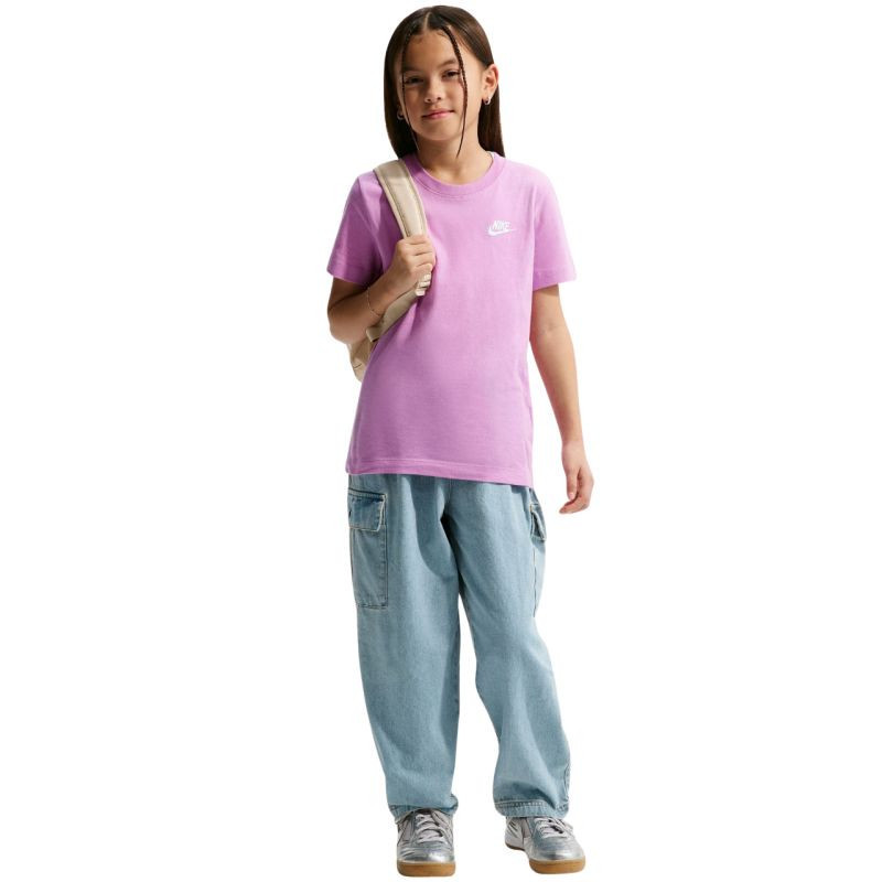 Růžové dětské tričko Nike Sportswear FZ5177 503 Dětské tričko Nike Sportswear pro běžné nošení je vyrobeno výhradně z měkké bavlny a má klasický střih s decentním malým logem na přední straně. 100% bavlna.