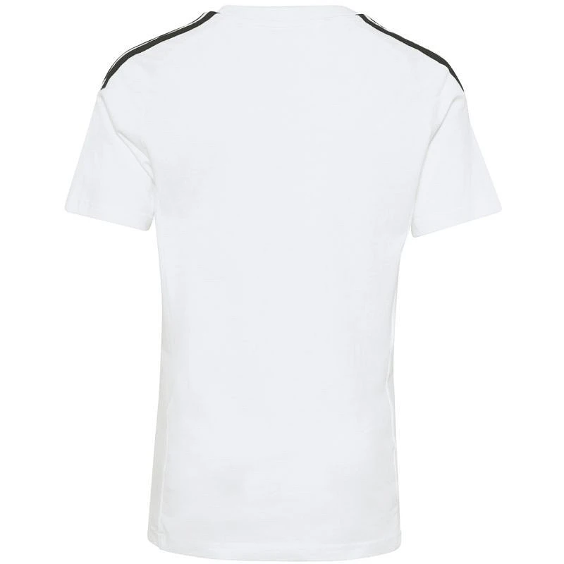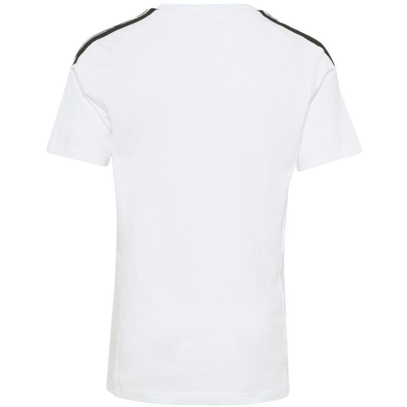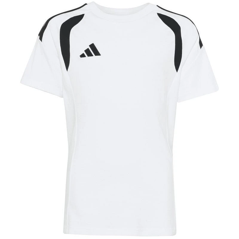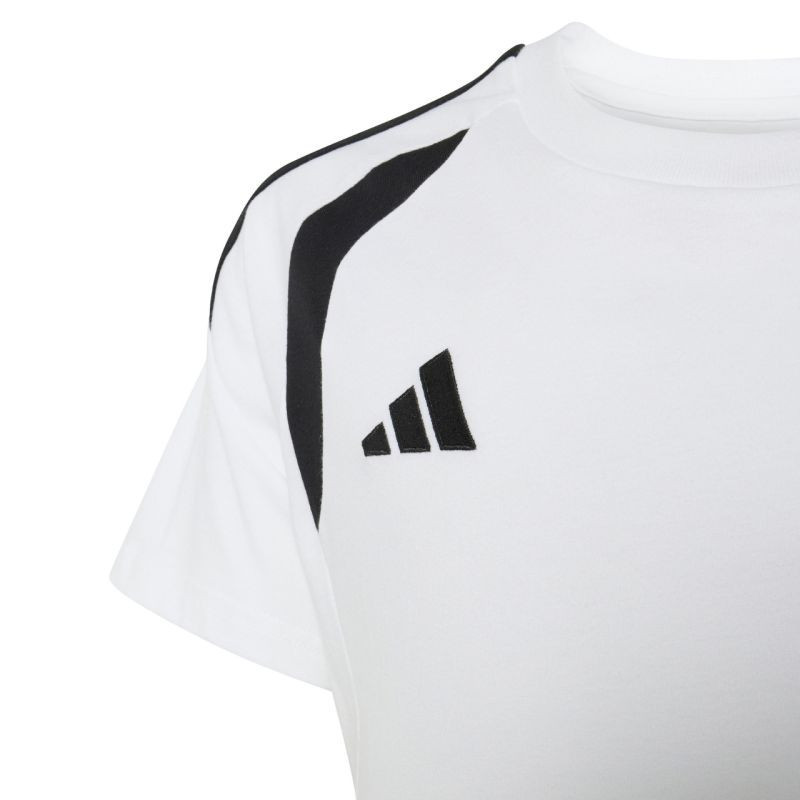 Koszulka dla dzieci adidas Tiro 26 League Tee biało-czarna KC3699 Koszulka dla dzieci adidas sprawdzi się podczas odpoczynku poza linią boiska. Model z linii Tiro jest inspirowany światem piłki nożnej. Haftowane logo adidas i 3 paski. Kontrastowe wstawki na klatce piersiowej. Miękki, bawełniany materiał. Regularny krój. Materiał: 100% bawełna