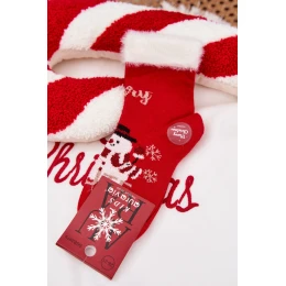 Dětské vánoční ponožky s kožíškem a sněhulákem z alpaka vlny – červené