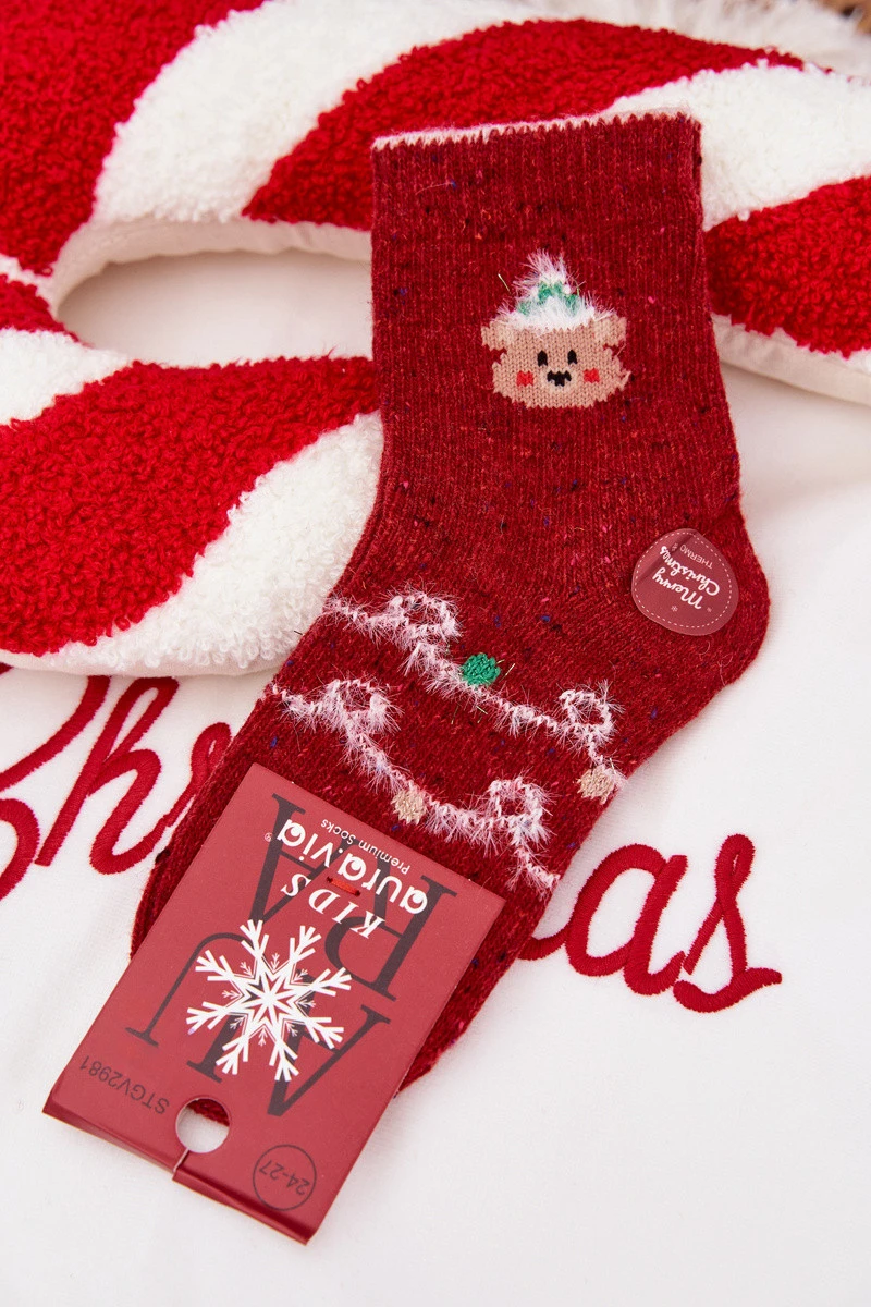 Dětské Vánoční Ponožky S Medvídkem Alpaka Vlna Červené