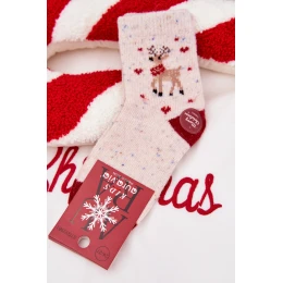 Dětské Vánoční Ponožky S sobem Vlna Alpaková Béžová