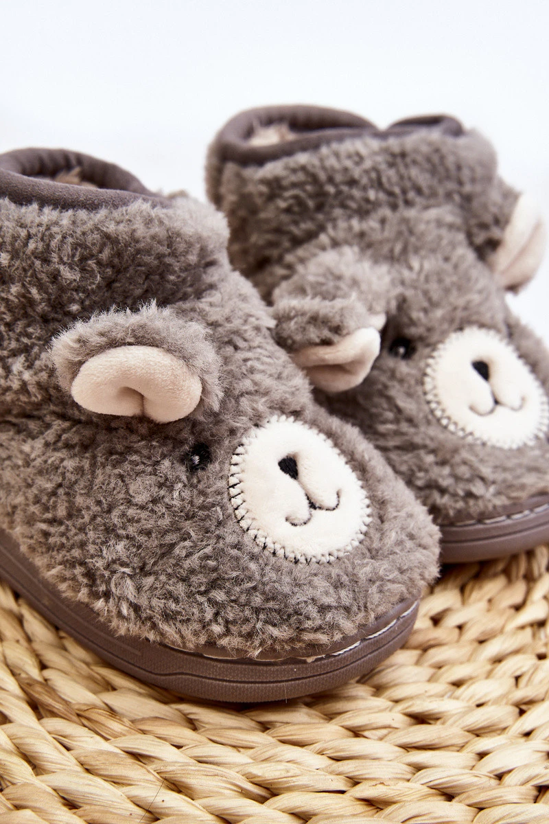 Dětské vyhřívané pantofle se šedým medvídkem model 21641175 - Boto
