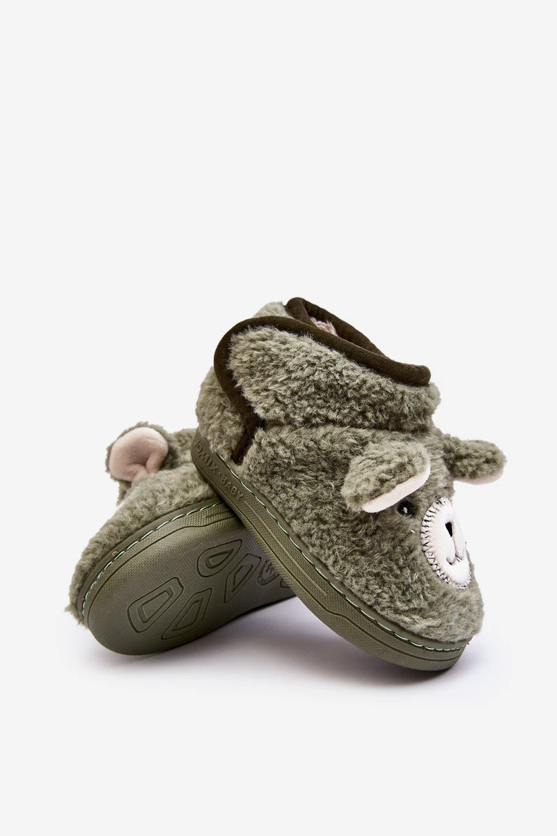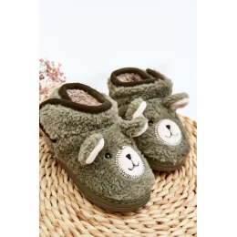 Dětské vyhřívané pantofle se zeleným medvídkem Eberra