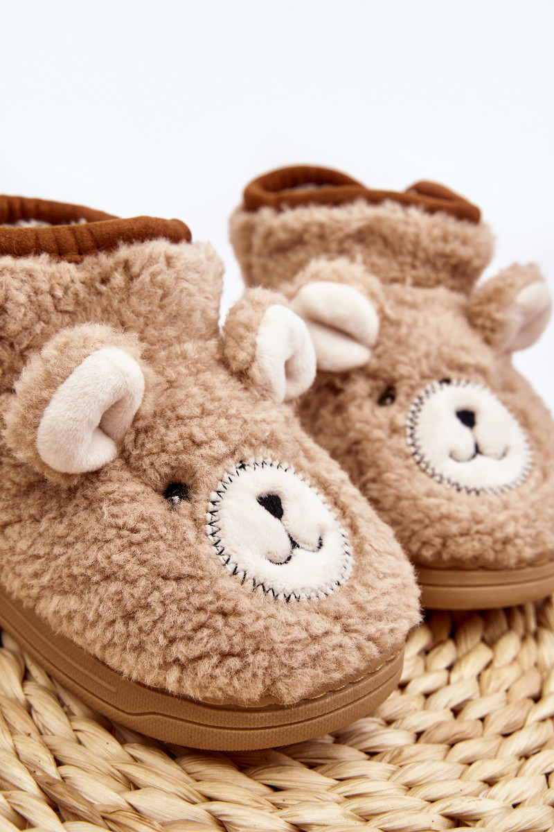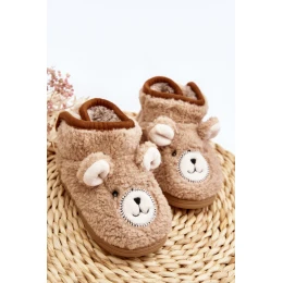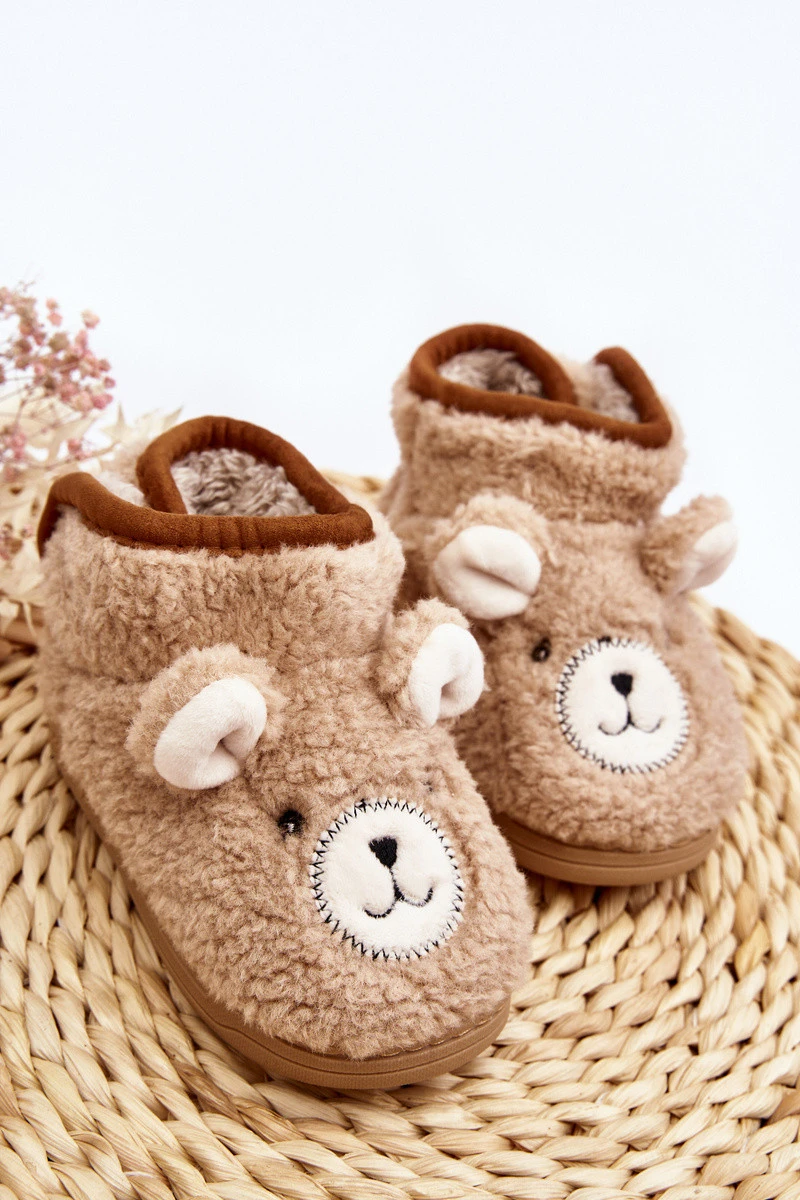 Dětské vyšívané pantofle s medvídkem hnědé Eberra