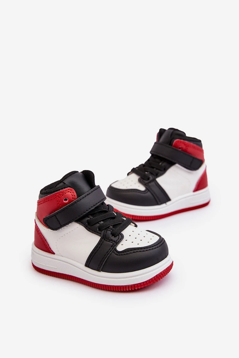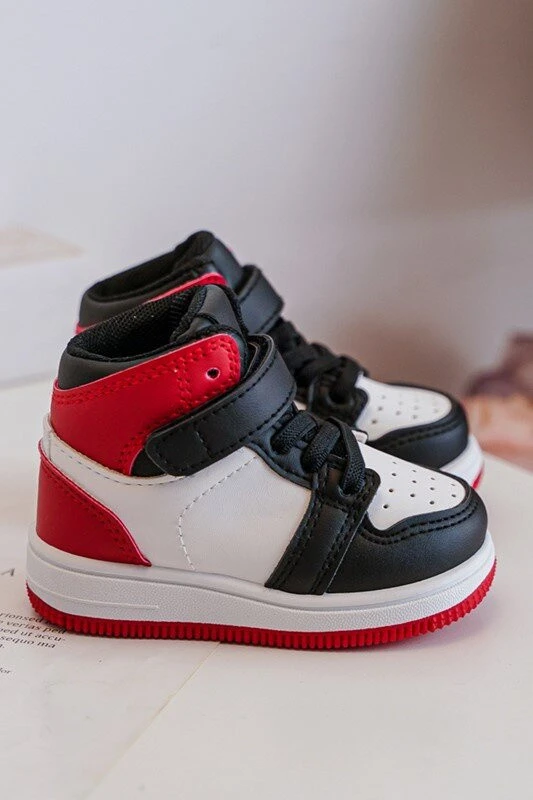 Dětské sportovní boty vyrobené z eko kůže. Připevněno na plošině z umělého materiálu. Upevněné na suchý zip a navíc mají gumové popruhy, které imitují šňůrky. Model s vyšší krajkou. Tyto tenisky určitě potěší vaše dítě! Při výběru velikosti se řiďte tabulkou velikostí.