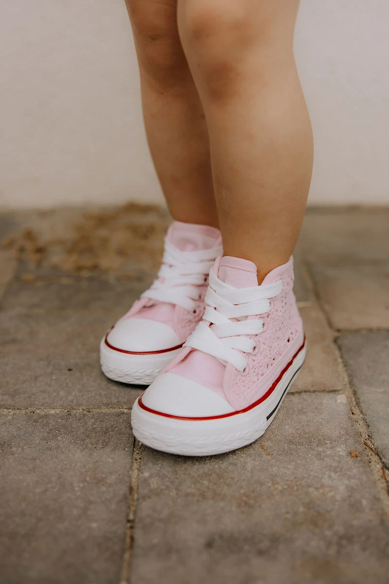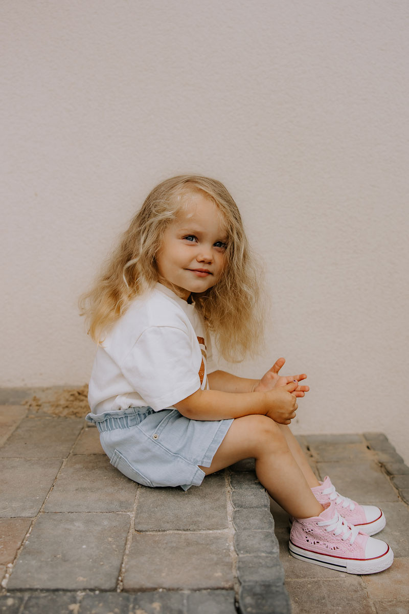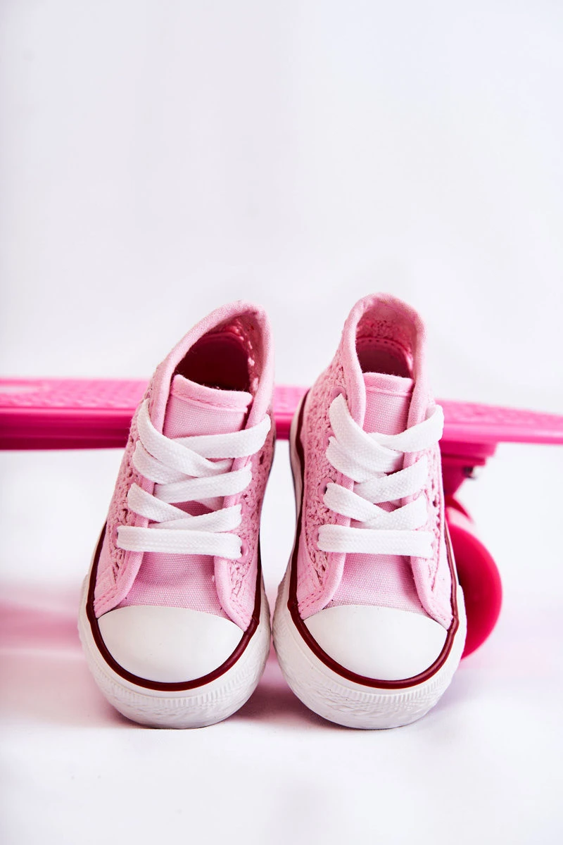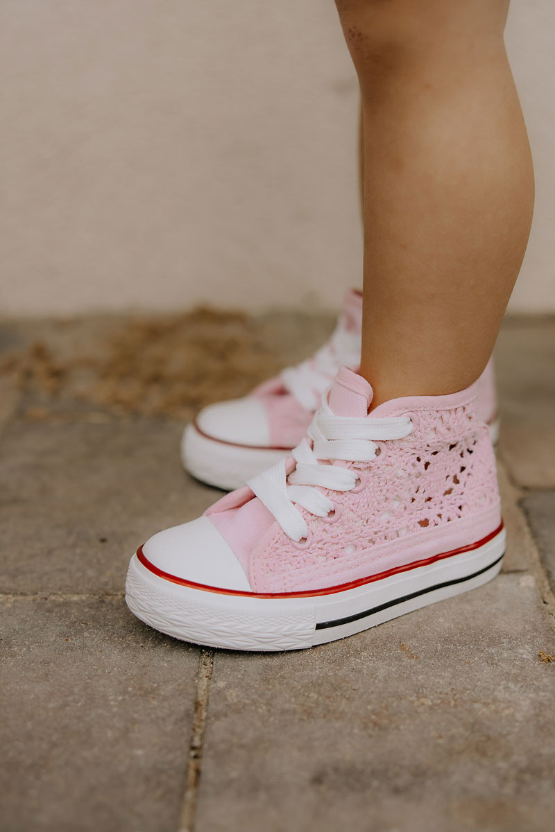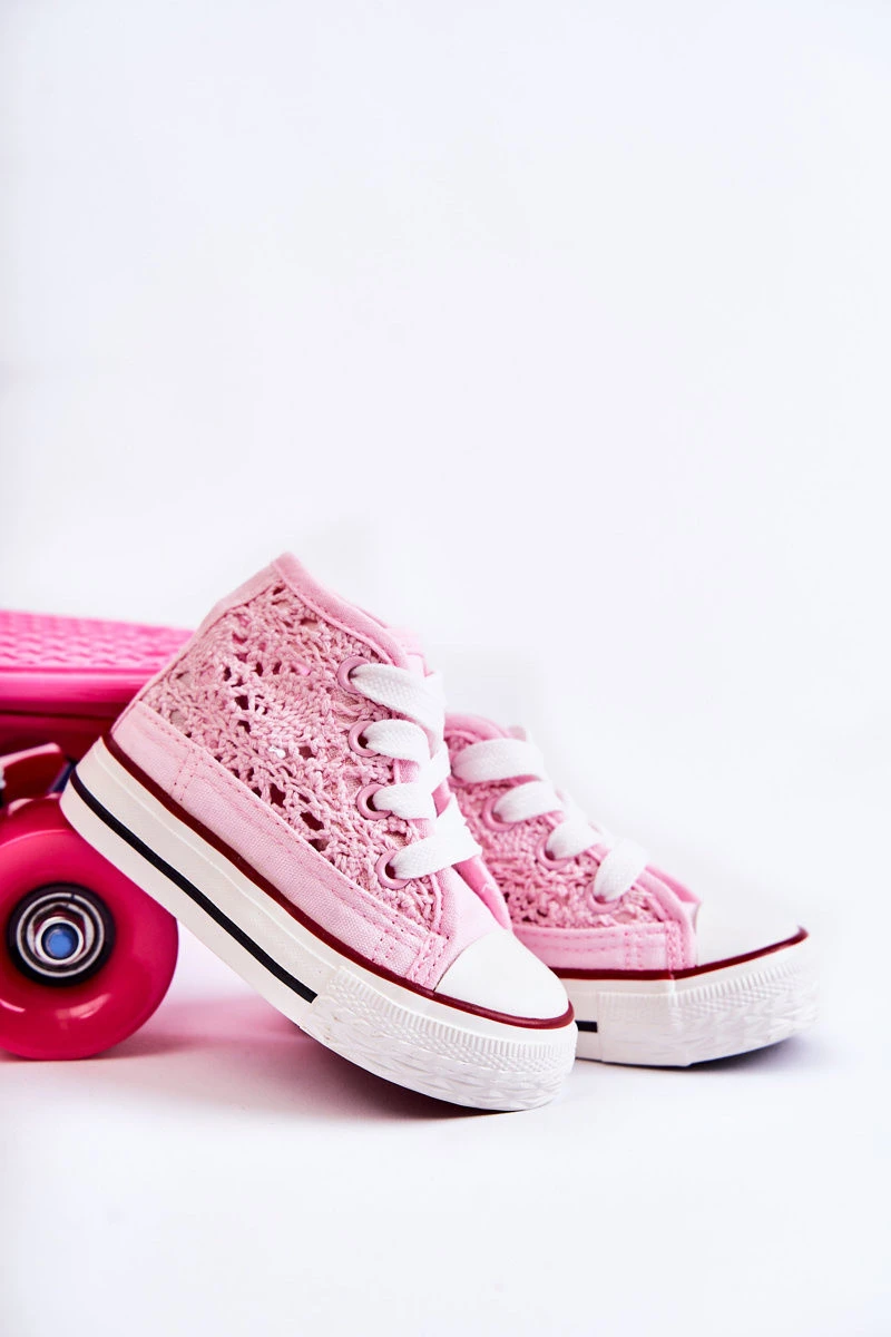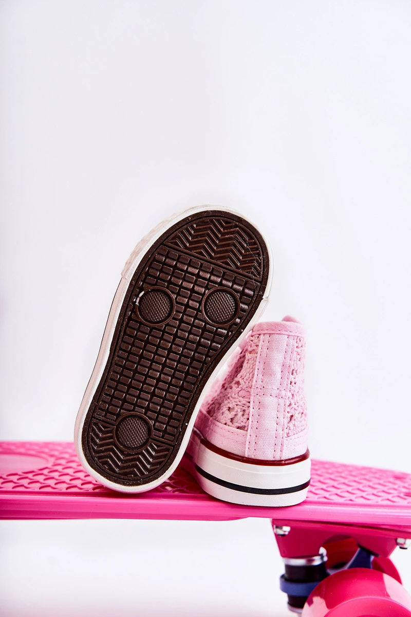 Klasické tenisky vyrobené z textilního materiálu. Boty mají prolamované zdobení. Vázání, které lze snadno upravit na šířku dětské nohy. Platforma s protiskluzovou podrážkou bude perfektní na hraní. Zaoblená špička je vyztužena gumovým materiálem. Vysoký svršek se skvěle hodí k šatům a džínám. Vaše dítě by mělo mít ve svém šatníku klasické tenisky. Tyto boty jsou pohodlné a pohodlné na používání. Při výběru velikosti použijte tabulku velikostí