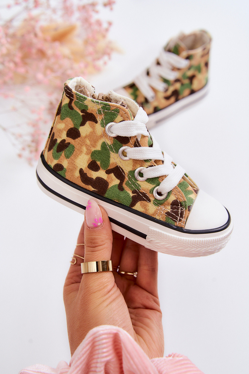 Dětské vysoké tenisky s zipem Béžová a zelená Filemon