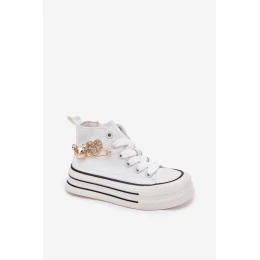 Dětské Vysoké Tenisky Se Zlatou Dekorací Bílé Elvena