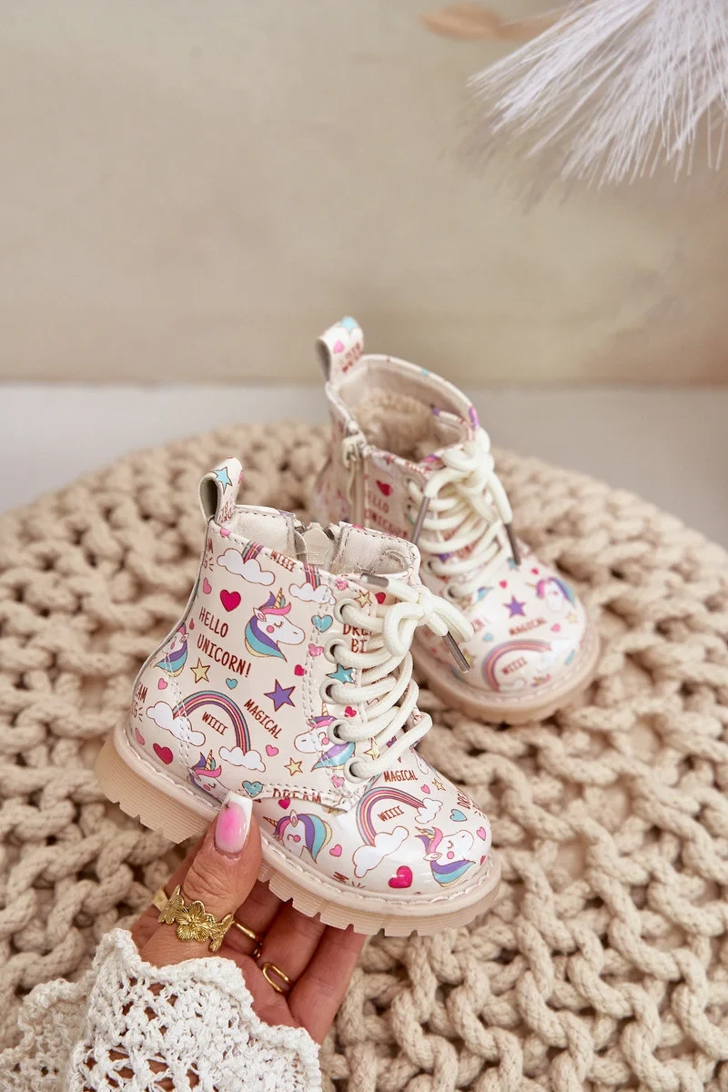 Dětské Zateplené Kotníkové Boty Se Zipem Jednorožci Béžové Tiptop
