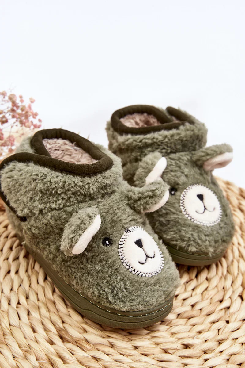 Dětské zateplené pantofle s medvídkem, zelená Eberra