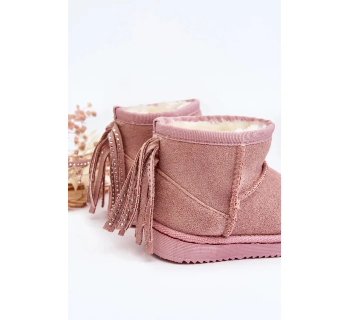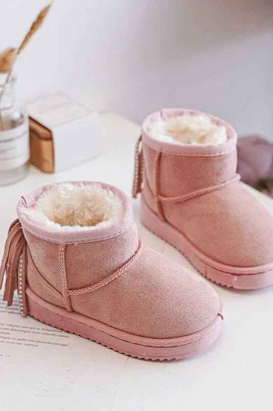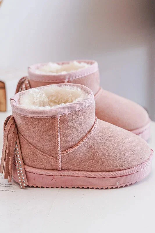 Dětské zateplené sněhule s třásněmi, růžová Mikyla