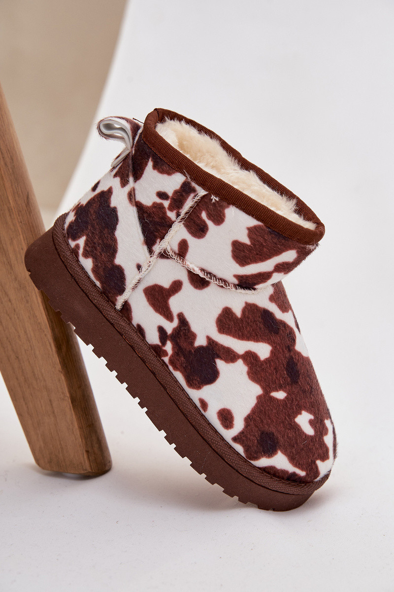 Dětské zimní boty pro mládež s teplou podšívkou s flísky bílo-hnědé Mireya