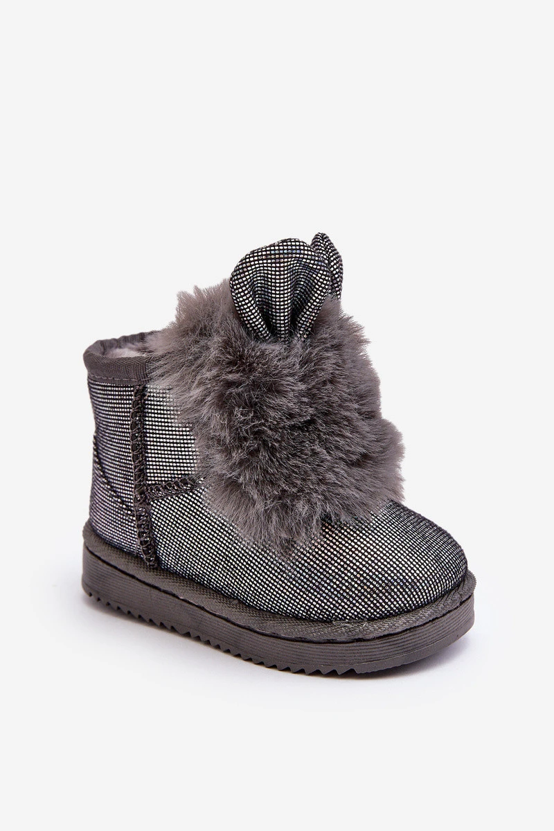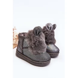 Dětské zimní boty s kožešinovou výplní a ušima šedé Betty